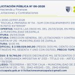 La Secretaría de Hacienda y Finanzas de la Municipalidad de Zapala lanzó el Llamado a Licitación Pública Nº 06/2026, a través de su Dirección de Licitaciones y Contrataciones, el cual está destinado a una obra en la escuela mencionada, que consta de un SUM (Salón Usos Múltiples) con […]