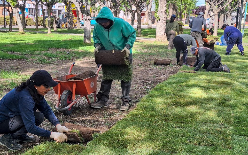 Para poder concretar el parquizado, era necesario poder finalizar con el tendido eléctrico subterráneo y el nuevo sistema de riego. A partir de allí, los trabajadores y trabajadoras pudieron iniciar con el proceso vinculado a la colocación de las nuevas champas, las cuales ya le cambiaron la visual en un 100% al espacio. Según datos oficiales se cubrirán 3000 m2 de superficie.