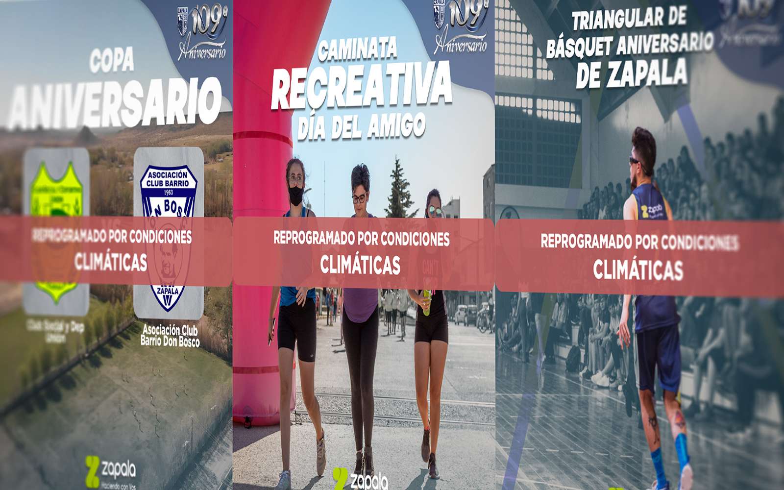 Una vez más, debido a las condiciones climáticas, la Municipalidad de Zapala junto a la Secretaría de Deportes, se ven obligadas a reprogramar una serie de actividades que estaban previstas para este fin de semana.
