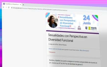 La Municipalidad de Zapala, a través de las Direcciones de Género y Diversidad y de Atención Integral a las Personas con Discapacidad, invita a la comunidad en general a participar al taller dictado por la Prof. Silvina Peirano. Los/as interesados/as en participar ya se pueden inscribir a través […]